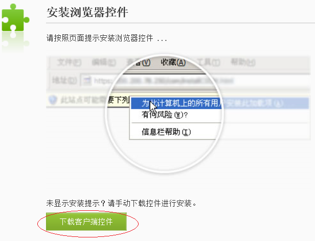 3. 第一次登录系统后某些浏览器可能会出现安装控件的界面,请选择“安装”,如下图所示: