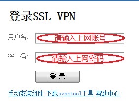 2. 浏览器会跳转到VPN系统的界面,如下图所示。用户名和密码与校园网上网账号、密码一致,系统支持电脑和移动终端访问。