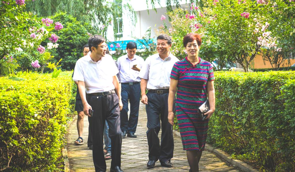 本网讯(特约记者/李骏)为创建全国文明校园,营造更加优美和谐的育人环境,7月13日下午,校党委书记刘荣英、校长安士伟、副校长周礼春在后勤中心主任熊新忠、保卫处长何云亭等的陪同下调研校园环境景观提升工作。