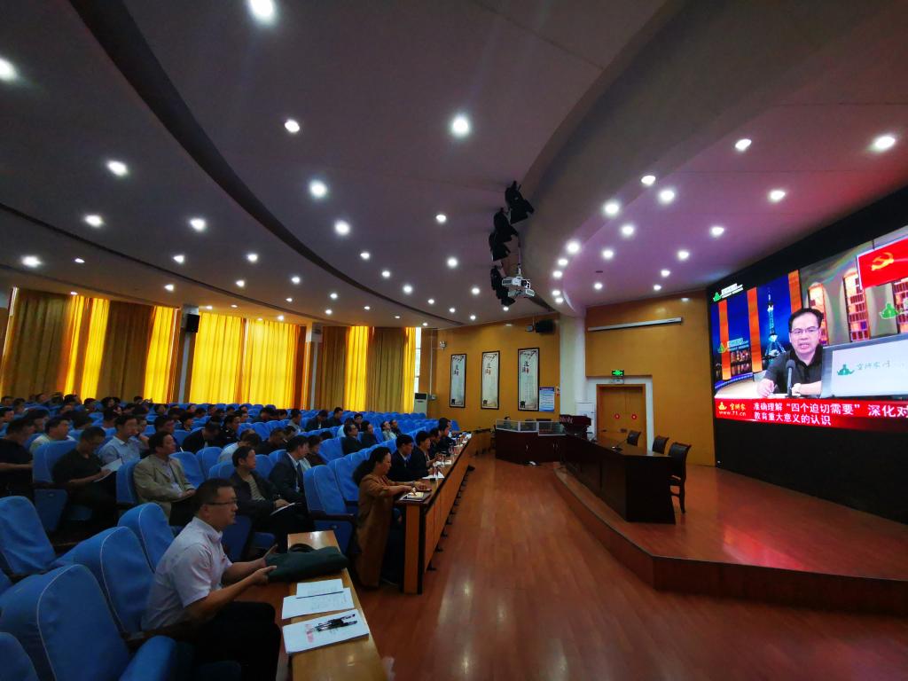 18日下午,全体中层以上领导干部在领创空间学术报告厅集中观看了中国社科院马克思主义研究院中国特色社会主义理论体系研究室主任贺新元关于《准确理解“四个迫切需要”,深化对主题教育重大意义的认识》辅导讲座视频。