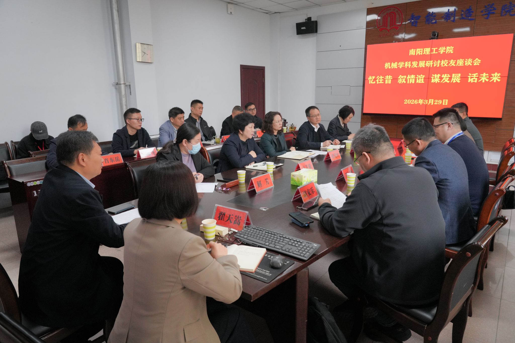 随后举行校友会第一次会员大会,审议表决通过《河南省南阳理工学院校友会章程》,并选举产生第一届理事会成员。在紧接着召开的校友会第一届第一次理事会上,选举产生校友会负责人。祝孔涛当选校友会第一届会长并兼任法人代表,李伟、任朝斌、陈金松、王海、张温良、李春燕、王平当选副会长,王金当选秘书长。会议还审议通过相关规章制度及2026年工作计划、财务预算。