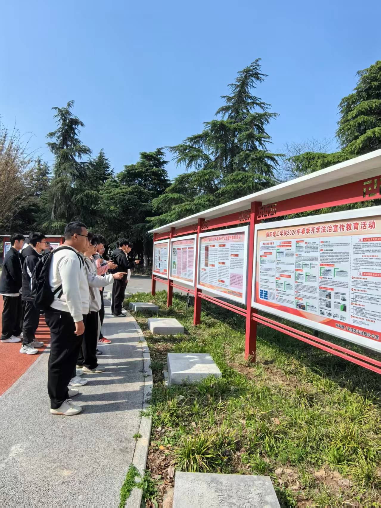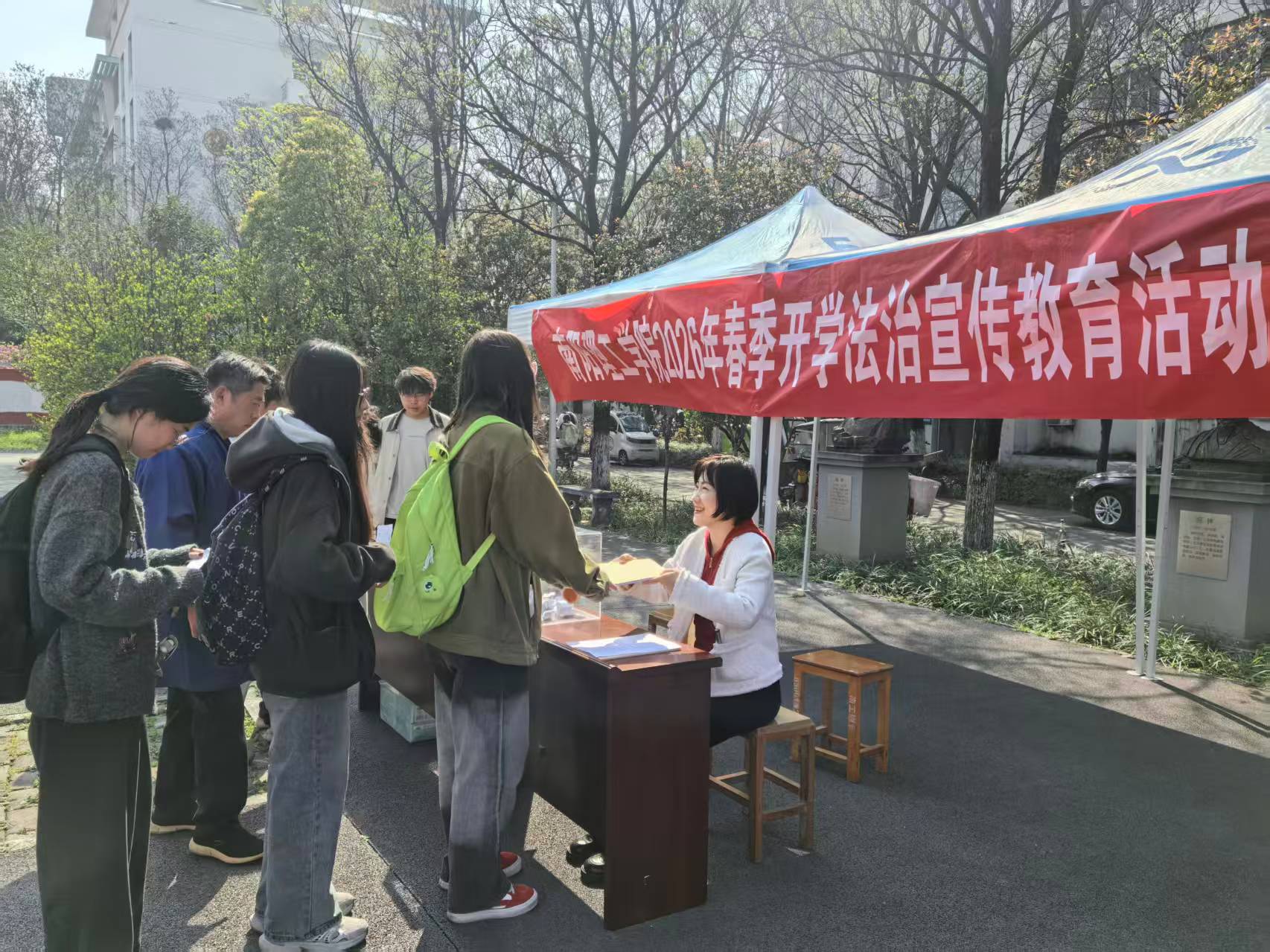 4月1日,学校依法治校办公室联合相关职能处室、生化学院等师生代表,在东南校区法治文化广场开展集中宣传活动。现场设置主题宣传展板长廊,重点普及《中华人民共和国宪法》《中华人民共和国民法典》《中华人民共和国反电信网络诈骗法》《中华人民共和国网络安全法》《中华人民共和国消防法》等与大学生学习、生活、就业密切相关的法律法规;同时结合校园管理实际,深入解读人身安全、宿舍管理、实习实践、考试纪律、纪律处分等校规校纪,引导学生自觉遵守校纪校规,养成良好行为习惯。