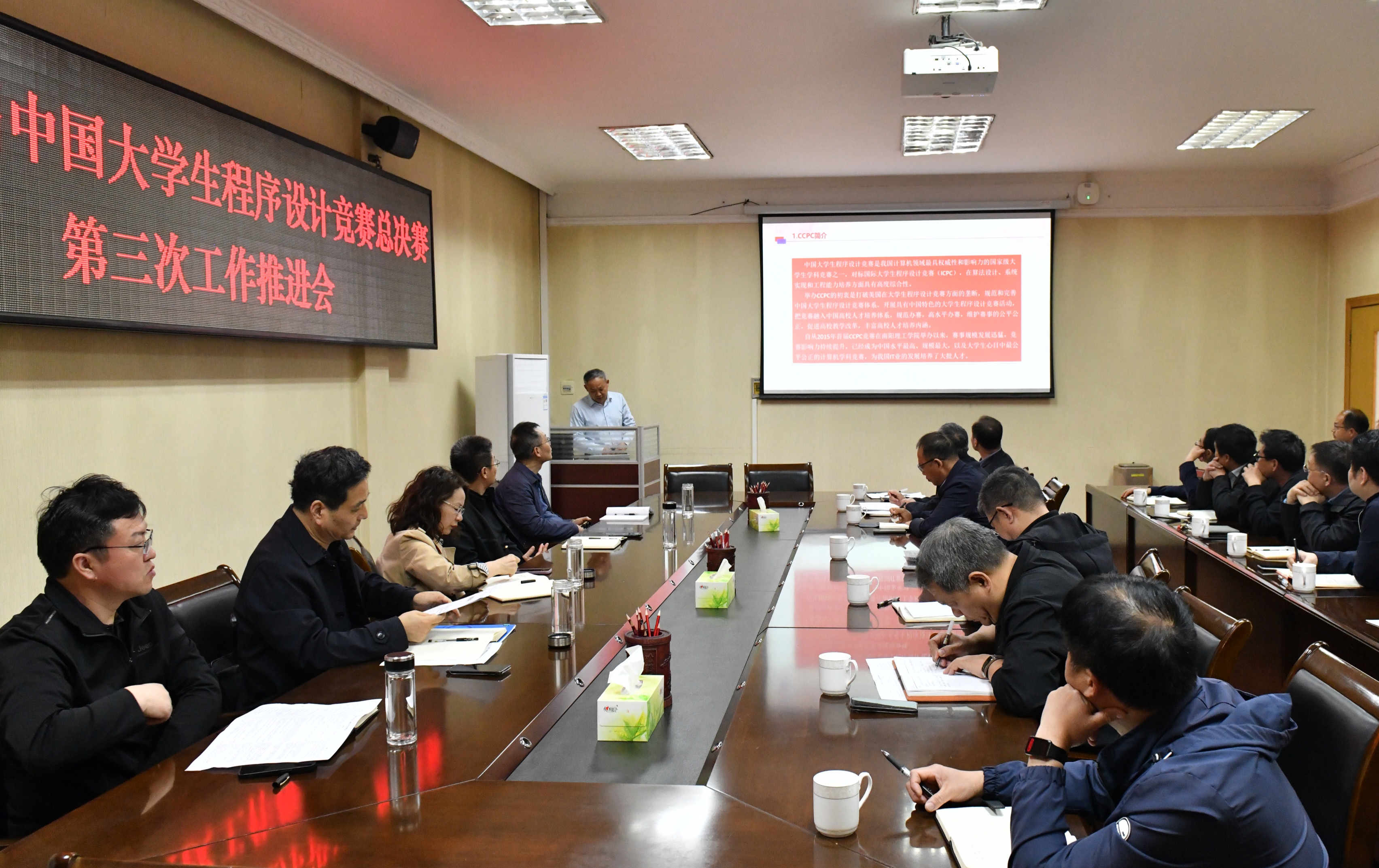 张爱红指出,第十一届中国大学生程序设计竞赛总决赛规模大、层次高,恰逢学校申硕攻坚的关键节点,既是对学校综合管理能力的全面检验,更是展示学校办学特色,提升学校知名度、扩大对外影响力的重要契机。全校要树立“一盘棋”思想,铆足干劲,以高度负责的态度推进各项筹备工作落地落细。她要求,一要筑牢安全底线,完善应急预案,从严抓好食宿、交通、赛场等各环节安全管理。二要细化工作方案,明确任务分工与时间节点,强化部门协同,确保确保各环节无缝衔接、责任闭环。三要加大宣传力度,全方位展示学校办学成果与良好风貌。四要统筹资源保障,多方筹措资金,精打细算用好经费,高质量完成会场布置、物资准备、嘉宾接待等工作,以严实作风确保赛事安全有序、圆满顺利。