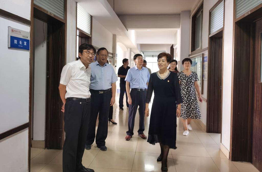 本网讯(特约记者 朱清慧)8月31日开学首日,党委书记刘荣英、校长安士伟,党委副书记、工会主席张伟,副校长张世海带领党政办、教务处、学生处、后勤服务中心单位负责同志深入到各教学院进行教学检查,全方位了解学校开学情况以及错峰上课落实情况。