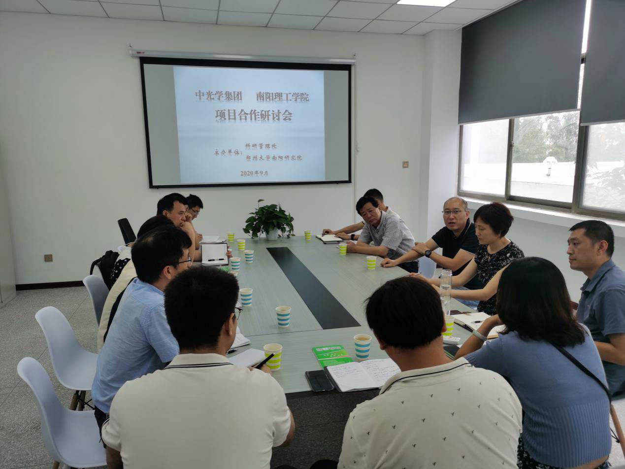 本网讯(特约记者/王冬旭)9月1日下午,河南中光学集团有限公司科技质量部主任刘钺一行到我校开展交流研讨活动。科研管理处、郑州大学南阳研究院、信息工程学院、建筑学院等相关单位同志参加研讨。