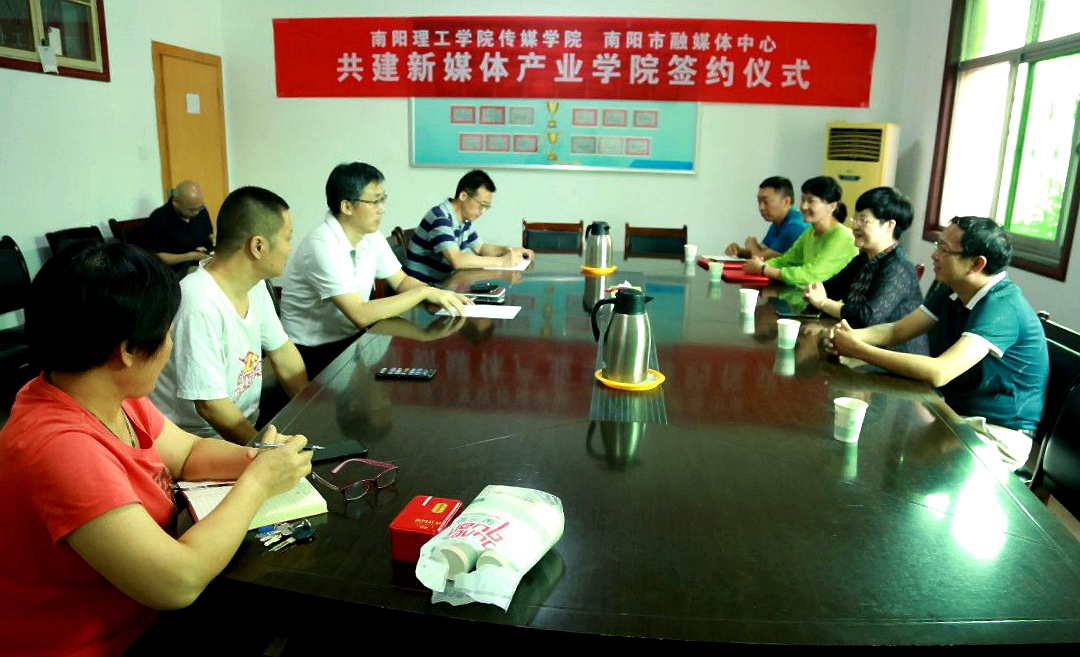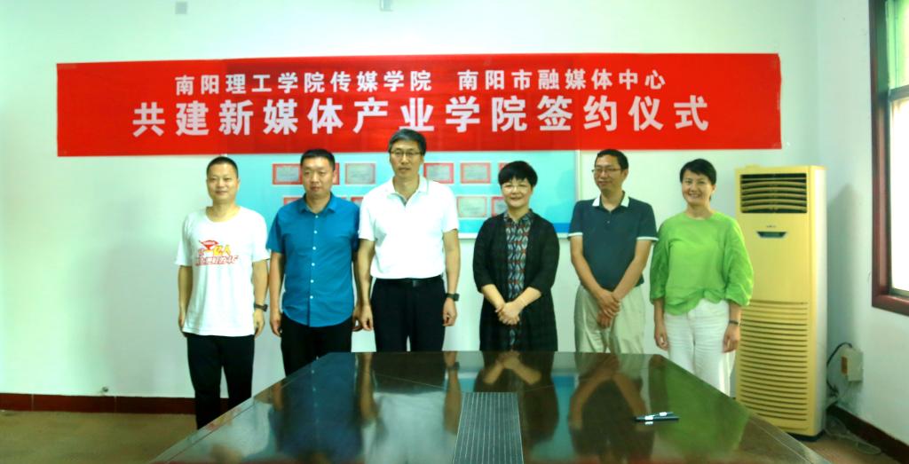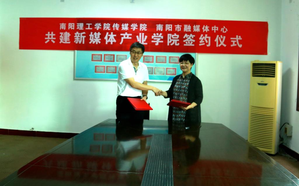 为实现学科、专业、产业相互促进、共同发展局面,努力实现学院与行业单位合作共建,教育链、人才链与产业链、创新链的有机衔接,南阳广播电视台(南阳市融媒体中心)与传媒学院一致同意在互惠互利、共同发展的基础上共建“新媒体产业学院”。今后,传媒学院将为南阳广播电视台在长远发展、战略定位、提高自主创新能力等方面提供技术、人才支持,协助做好编制发展规划,设立相关课程,派出经验丰富的教师参与广播电视台的管理和技术工作,定向培养学生等。该台也将参与我院课程的开发工作,提供适合的项目业务实践岗位,为学院学科、专业发展提供信息数据以及调研方面的支持,做好双师双能型教师的培养,优先为学生提供实习实践及就业岗位,并对人才培养标准提出建议等。