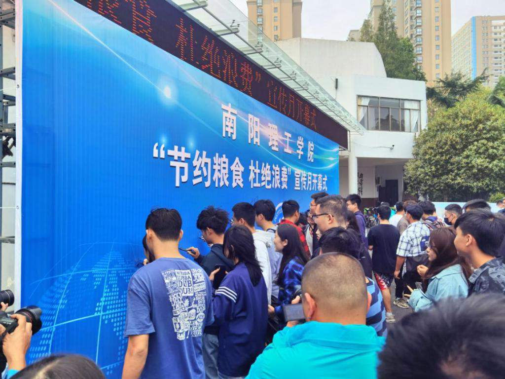 9月30日上午11点,“传承节俭美德,弘扬节俭精神——节约粮食,杜绝浪费”宣传月活动开幕仪式在领创空间广场举行,南阳市市场监督管理局城乡一体化示范区分局局长许荣凡,校党委书记刘荣英,副校长肖泽昌,纪委书记、监察专员许建辉出席开幕仪式,校党政办公室、党委宣传部、纪委、人事处、学生处、团委、后勤服务中心、各教学院领导及学生代表参加启动仪式。