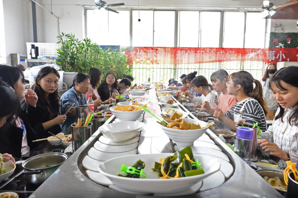后勤服务中心主任熊新忠介绍,今年恰逢国庆中秋在同一天,学校考虑给所有在校生组织一场团圆“宴”,共叙中秋情,畅谈报国志。为充分组织好这场活动,学校对各个餐厅做了周密安排,一是把好食材采购关;二是把好饭菜烹饪关;三是把好足量供应、反对浪费的宣传关,每位餐厨人员都是“厉行节约,反对浪费”的宣传员和监督员,营造浓厚的节约氛围。
