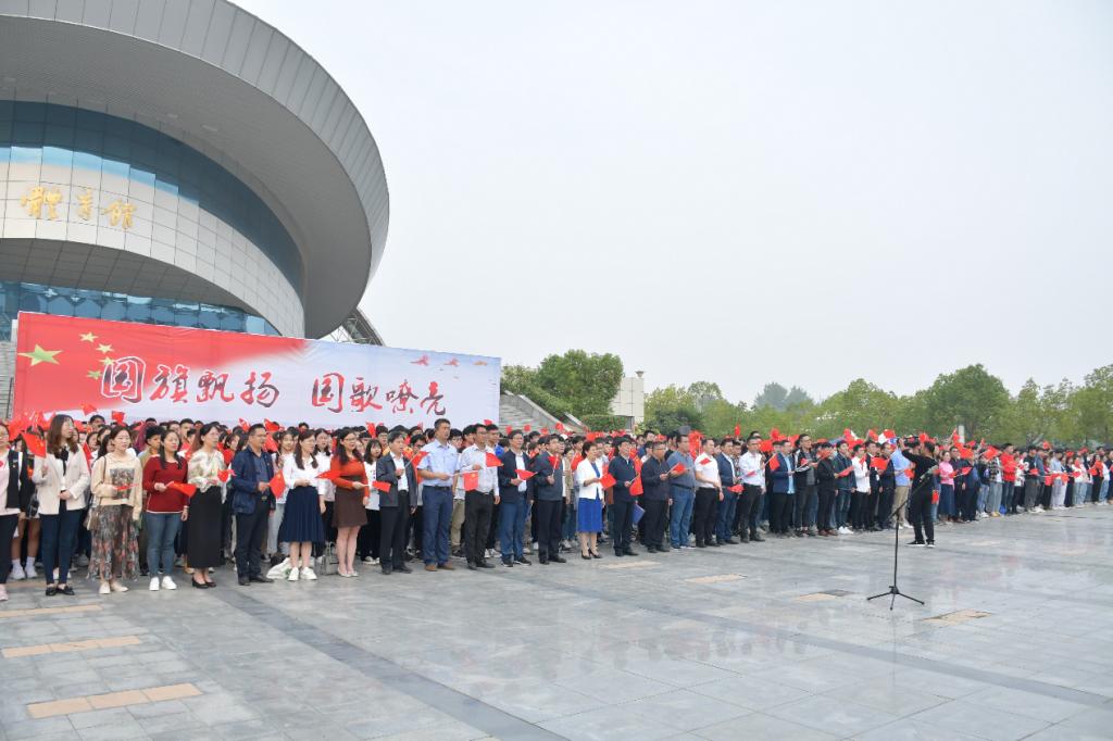 活动尾声,在场师生共同挥动手中的国旗,同声唱响《歌唱祖国》,表达对祖国母亲的深情祝福。