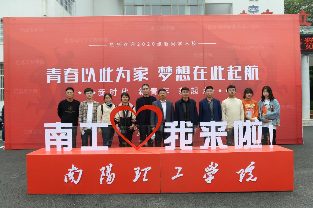 各系院迎新创意纷呈,推陈出新。计算机与软件学院设计的“欢迎新同学”展板引人驻足,张伟一行在展板前和新生、家长合影留念。