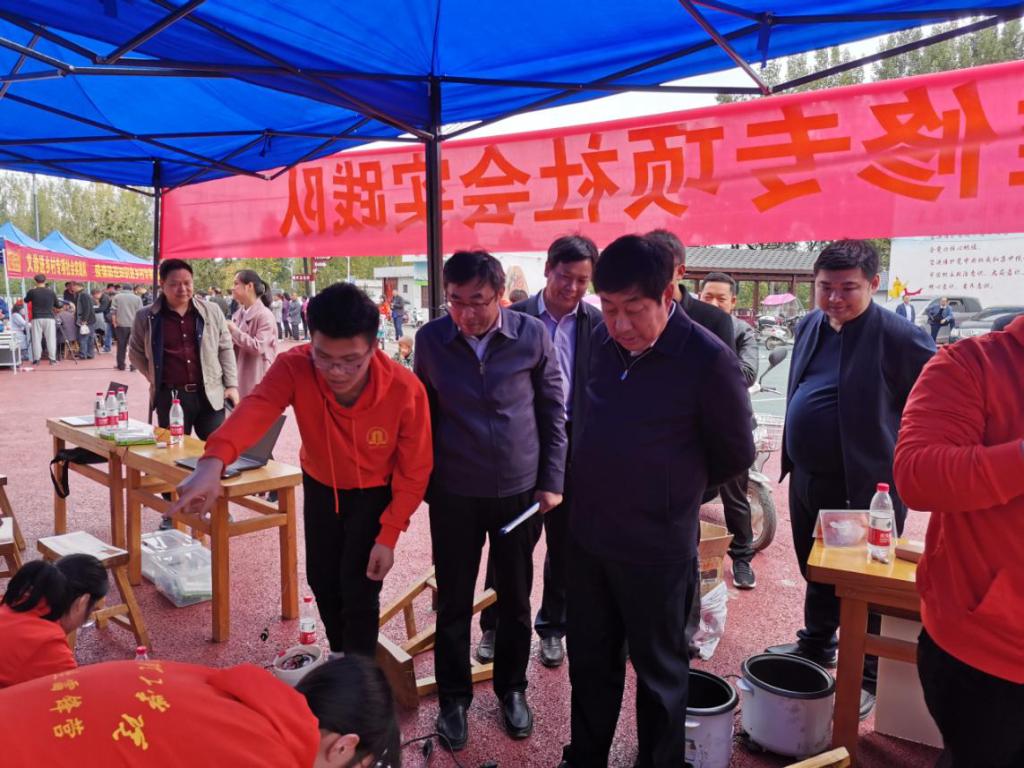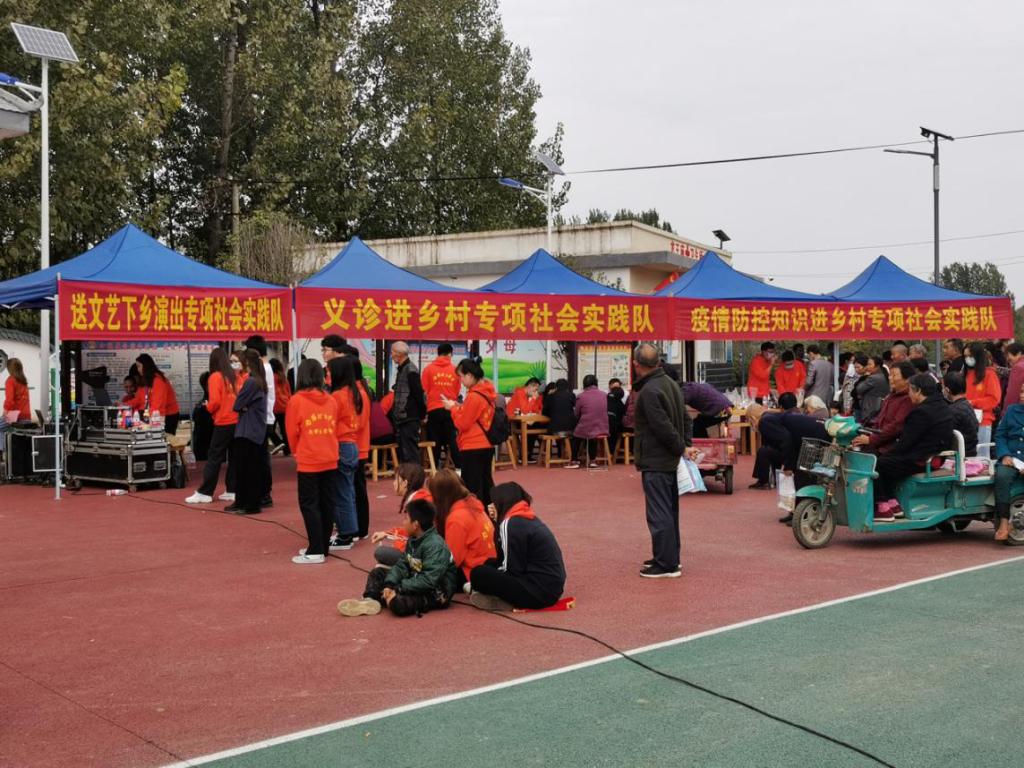 下午14时,结对帮扶小组一行人来到扶贫日系列活动最后一站南河店镇龙王庙村,实地考察“六个一”专项社会实践活动走进南河店镇,在龙王庙小学中,安士伟与肖泽昌亲自为小学生们分发捐赠的新书包和体育文具用品,学生们脸上洋溢着幸福快乐的笑容。在“六个一”实践活动中,我校雷锋营的志愿者们为龙王庙村村民们无偿修理家用电器,展示才艺,为村民普及防控疫情知识,同时还有相关医务人员为村民们义诊,提供测血压、血糖、问诊等多种健康服务,不仅给村民们带来了检测身体健康的机会,还丰富了村民的文化生活与精神世界。