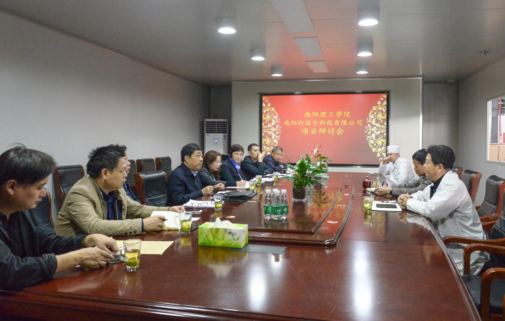 我校科研管理处、校地合作与管理服务中心、郑州大学南阳研究院的相关负责同志还就进一步深化校企合作、联合申报南阳市协同创新重大专项、组织科研团队开展技术研发等工作,与柯丽尔科技有限公司的相关负责同志进行了深入探讨交流。