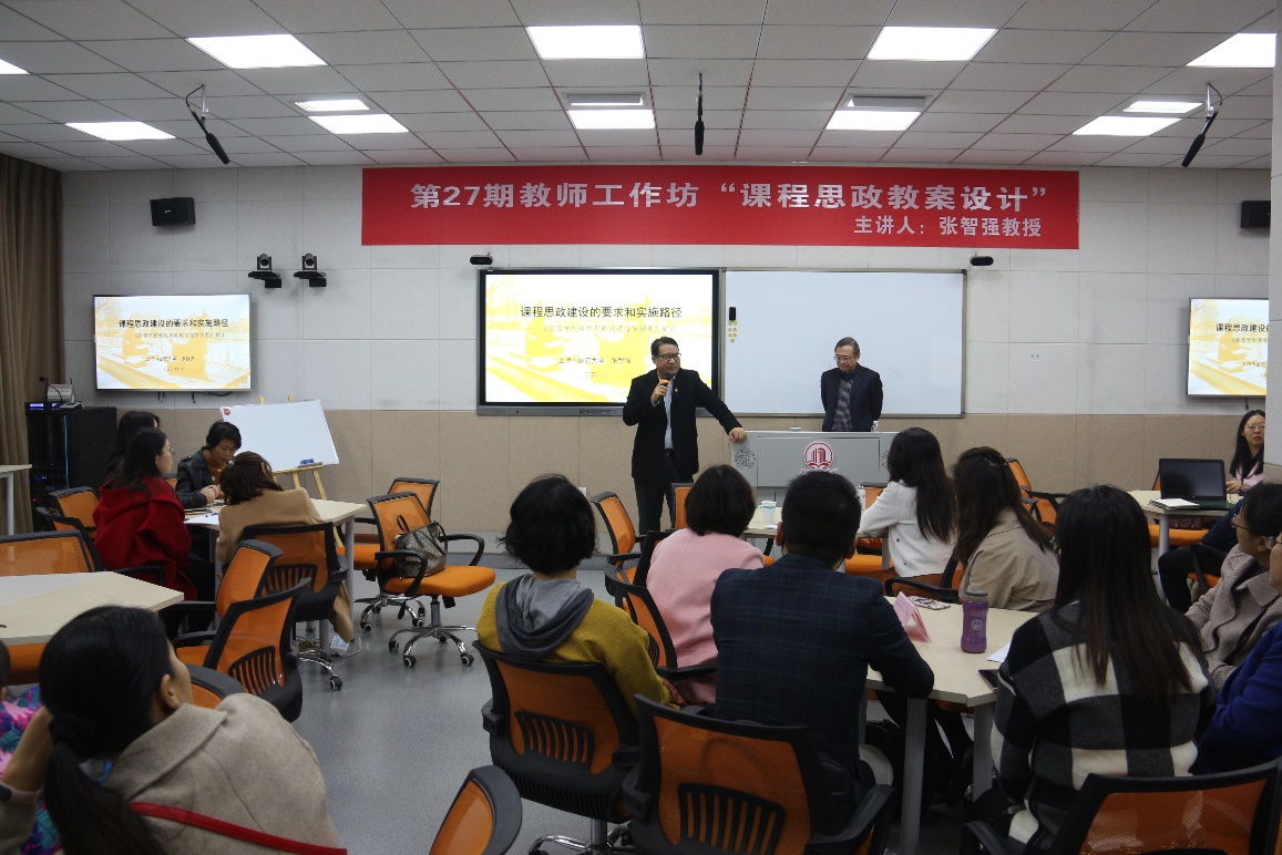 本期教师工作坊分为理论授课、实践操作、展示交流三个环节。理论授课环节,张智强重点讲授如何发掘高校专业课程中的思想政治教育资源,并以《人体解剖解剖学》《土木工程概论》《专业英语》《概率论与数理统计》《大学体育》等不同高校不同专业课程为案例,详细讲授了课程思政教案设计的基本要求。