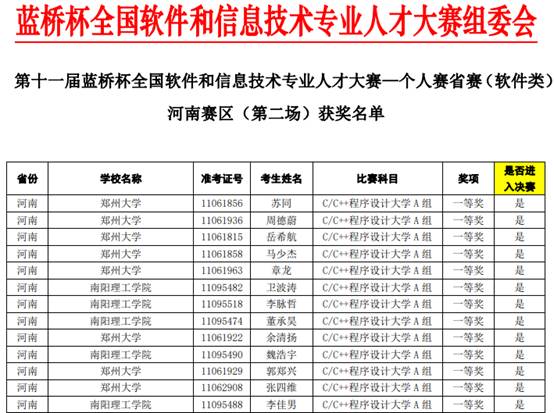 第十一届“蓝桥杯”全国软件和信息技术专业人才大赛由工业和信息化部人才交流中心主办。郑州大学、河南大学等40多所高校学生参加此项竞赛。此项赛事在2020年初成功入选中国高等教育学会发布的《2019全国普通高校学科竞赛排行榜》,已成为高校教育教学改革和创新人才培养的重要竞赛项目。(校对/刘庚 审核/肖邓华)