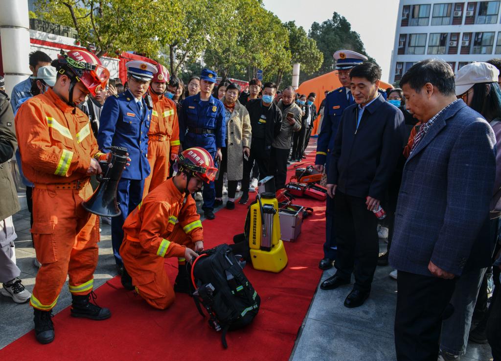 启动仪式结束后,全体人员共同观看了模拟体育馆火灾,高喷消防车扑救,消防机器人扑救火灾,模拟学生宿舍楼火灾、学生疏散和模拟逃生现场等一系列活动。(摄影记者/李娜娜 校对/刘庚 审核/肖邓华)