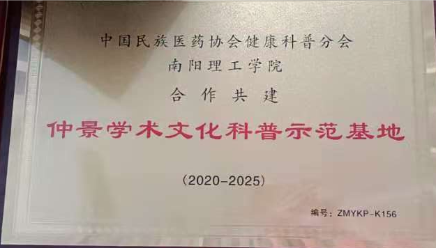 经过前期的资料审核、实地查看等环节,中国民族医药协会健康科普分会认为我校在仲景学术科研领域、仲景学术文化进校园、仲景学术氛围营造等方面均取得了丰硕成果,决定与我校合作共建仲景学术文化科普示范基地。“仲景学术文化科普示范基地”的建立将进一步推动仲景学术文化在我校传承与发展,彰显中医药文化自信,助力健康中国建设。我校张仲景国医国药学院院长卞华教授当选为中华民族医药协会健康科普分会副会长,并荣获2020年度“健康科普之星”。