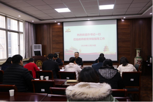 本网讯(特约记者/赵尊)11月24日下午,校纪委书记、监察专员许建辉一行到教师教育学院就党建与思想政治工作进行专题调研。学院领导班子成员、各党支部书记参加会议。
