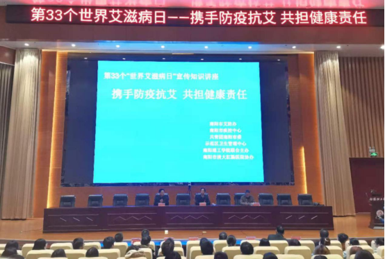 此次活动由南阳市艾防办、南阳市疾控中心、共青团南阳市委、示范区卫管中心和我校共同举办,通过讲座、宣传展板等方式为全校师生普及艾滋病防治科普知识。活动旨在全球抗击新冠肺炎疫情背景下,加强团结协作,携手应对新冠肺炎、艾滋病等全球范围内重大传染病挑战,共同抗击艾滋病,为实现艾滋病防控目标、构建人类卫生健康共同体努力。(校对/刘庚 审核/肖邓华)