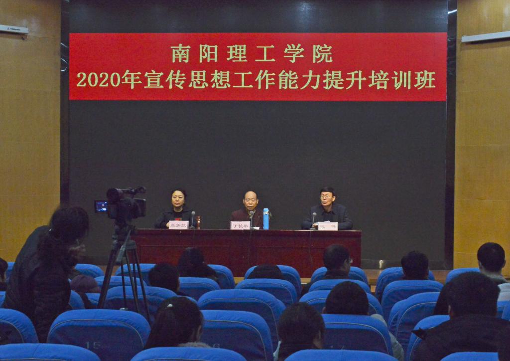本网讯(记者/刘庚 学生记者/陶思恒)12月10日上午,河南广播电视台高级记者、高级编辑丁长举应邀来校做2020年宣传思想工作能力提升培训班第一讲。各单位从事宣传思想工作的相关负责同志和学生代表参加培训班。校党委副书记、工会主席张伟出席培训班并讲话。培训会由党委委员、党委宣传部部长高芳放主持。