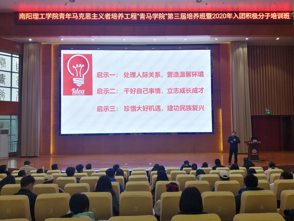 本网讯(特约记者/高亢 学生记者/赵雨露)12月18日下午,校青年马克思主义者培养工程“青马学院”第三届培养班暨2020年入团积极分子培训班在第三学术报告厅举办。校长安士伟出席并授课,校团委全体同志,教学院团委书记、副书记,“青马学院”第三届培养班学员,各教学院“青马学堂”学员代表和2020年入团积极分子参加培训。