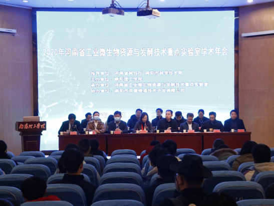 本网讯(特约记者/张梦)12月19日,2020年河南省工业微生物资源与发酵技术重点实验室学术年会在我校领创空间报告厅举行。南阳市科技局副局长王东良,副校长张爱红出席会议。省内外多所高校学者专家、企业代表、2020年度重点实验室开放课题立项项目负责人及生物与化学工程学院部分师生参加会议。