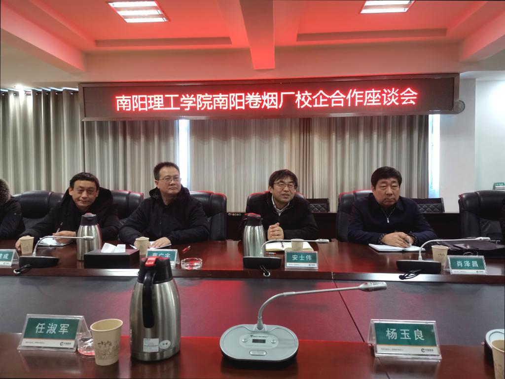 本网讯(特约记者/符浩彬)12月30日上午,校长安士伟,副校长肖泽昌带领相关单位负责同志赴南阳卷烟厂洽谈校企合作事宜。