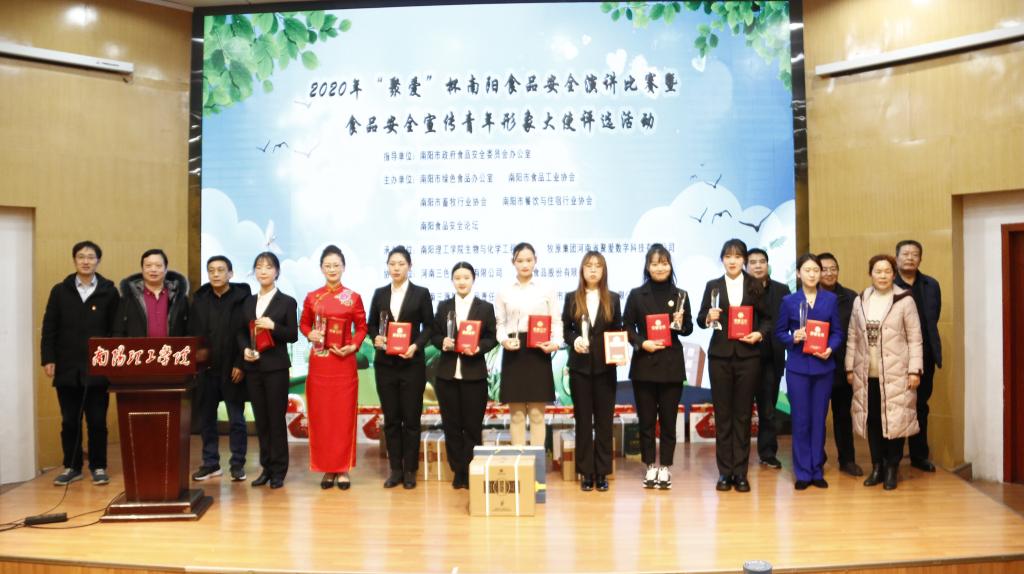 来自全市二十多家大中型企业和四所院校选送的22名参赛选手依次登台演讲,从不同角度讲述自己对食品安全的理解,解读食品安全对食品安全主体企业生存发展的重要意义,呼吁食品安全责任主体企业重视产品质量把控和品牌培育建设,推动食品产业高质量发展。经过激烈角逐,我校生物与化学工程学院吴俊玛获得比赛二等奖,张仲景国医国药学院姬志丽、河南省工业微生物资源与发酵技术重点实验室张安明获得三等奖,三位同学同时被授予“食品安全宣传青年形象大使”荣誉称号。