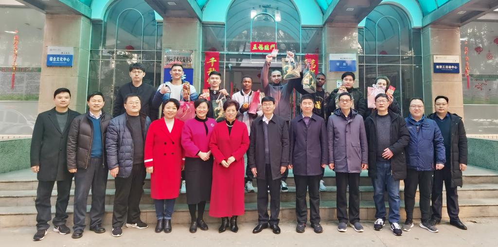 本网讯(记者/段亚楠)2月12日,农历正月初一上午,校党委书记刘荣英,校党委副书记、工会主席张伟,副校长王玉磊在党政办公室、党委宣传部、党委学生工作部、党委保卫工作部、国际交流合作中心、后勤服务中心等部门负责同志陪同下,亲切看望并慰问春节期间坚守岗位的教职工和留校学生,代表学校送去诚挚的节日问候与祝福。