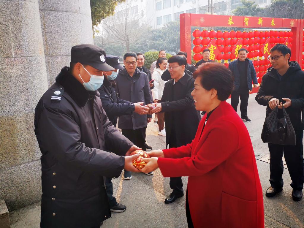 刘荣英一行先后来到行政楼保卫总值班室、北大门值班室、报警监控指挥中心、水电科、青年公寓等处,认真询问了各岗位具体工作情况,感谢他们坚守岗位、无私奉献,在春节期间为校园的正常运行和安全稳定提供充足保障。在青年公寓,校领导详细询问了解留校学生以及外国留学生的假期学习和生活安排,嘱咐同学们要注意节日期间出行、饮食安全,做好防疫工作,度过一个欢乐祥和的节日。值班人员纷纷表示,一定坚守岗位、尽职尽责,用实际行动确保学校各项工作正常有序运行。