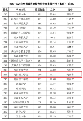 本网讯(特约记者/赵刚彬 张启鑫)近日,中国高等教育学会发布2020全国普通高校大学生竞赛排行榜,我校以250项奖项数量、55.77总分名列2016-2020年全国普通高校大学生竞赛排行榜(本科)第244名,河南省第8名,全国新建本科院校大学生竞赛排行榜第15名,河南省第1名,连续五轮进入全国前300强。