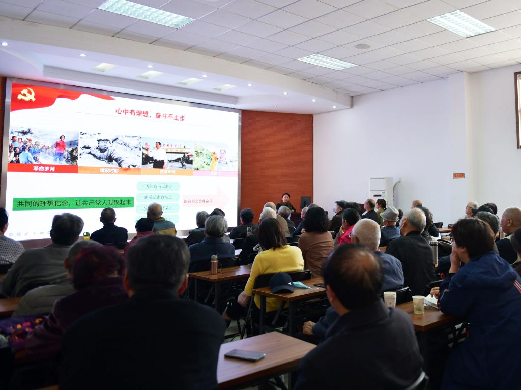 高芳放以《学党史强信念跟党走》为题,结合自己党史学习的心得体会,从坚定不移走自己的路、坚持思想建党理论强党、牢记为人民服务的宗旨、纪律严明是党的优良传统、要有坚定的理想信念和勇于担当的品质六个方面进行详细阐述。她指出,历史是从昨天走到今天再走向明天的,历史的联系不可割断。中国共产党建党百年,已经团结带领中国人民创造了历史的辉煌。中国共产党今天取得的辉煌,为明天取得更大的辉煌创造了条件,奠定了基础。要不忘初心跟党走,牢记使命勇担当。