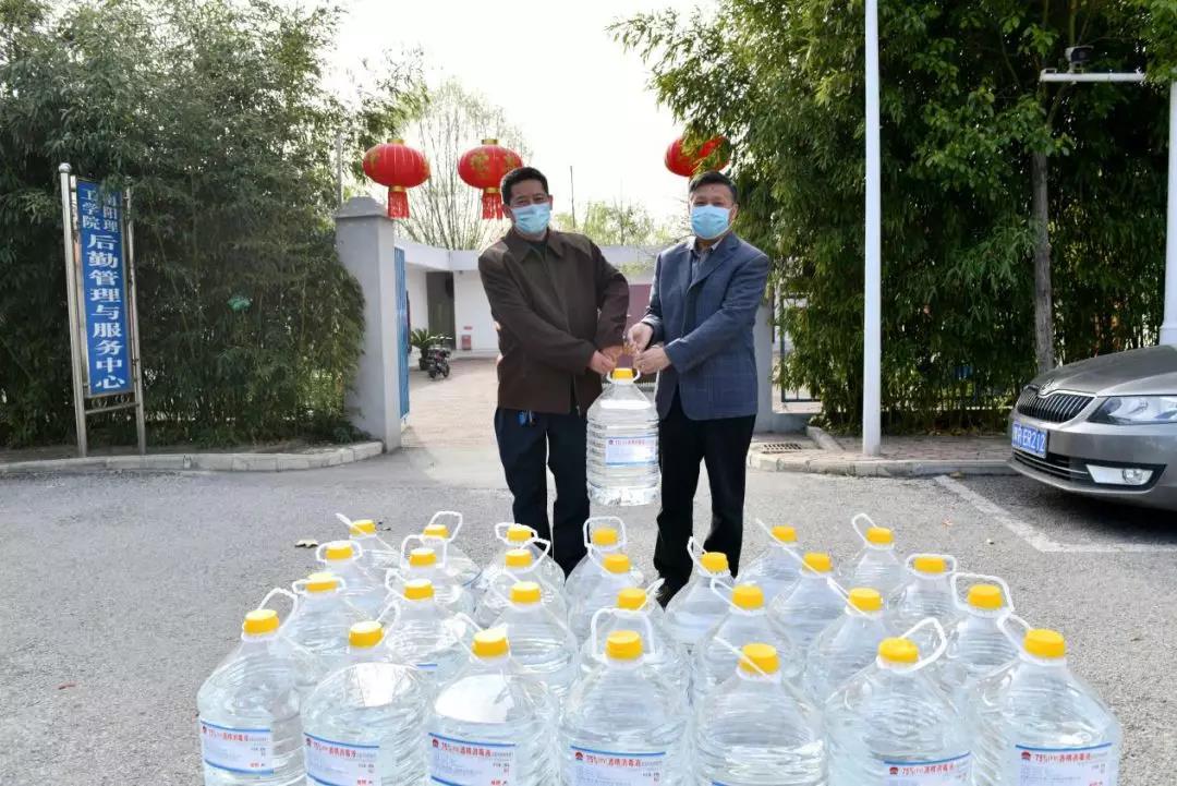 本网讯 3月18日,河南天冠集团向我校爱心捐赠防疫物资,共计600升75%酒精消毒液,下一步还将有2400升消毒液陆续送达我校,助力我校做好新冠肺炎疫情防控工作。校工会主席周礼春代表学校接受捐赠。