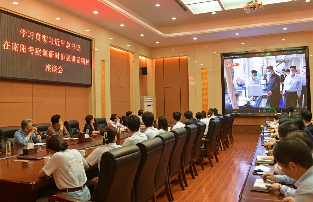 本网讯(记者/鲁静薇)5月14日下午,我校在会议中心召开学习贯彻习近平总书记在南阳考察调研时重要讲话精神座谈会,校党委书记刘荣英,校长安士伟,党委副书记秦鹏鸣,党委副书记、工会主席张伟,纪委书记、监察专员许建辉,副校长葛晨光、王玉磊出席会议,校内相关单位主要负责同志及张仲景国医国药学院师生代表参加会议。