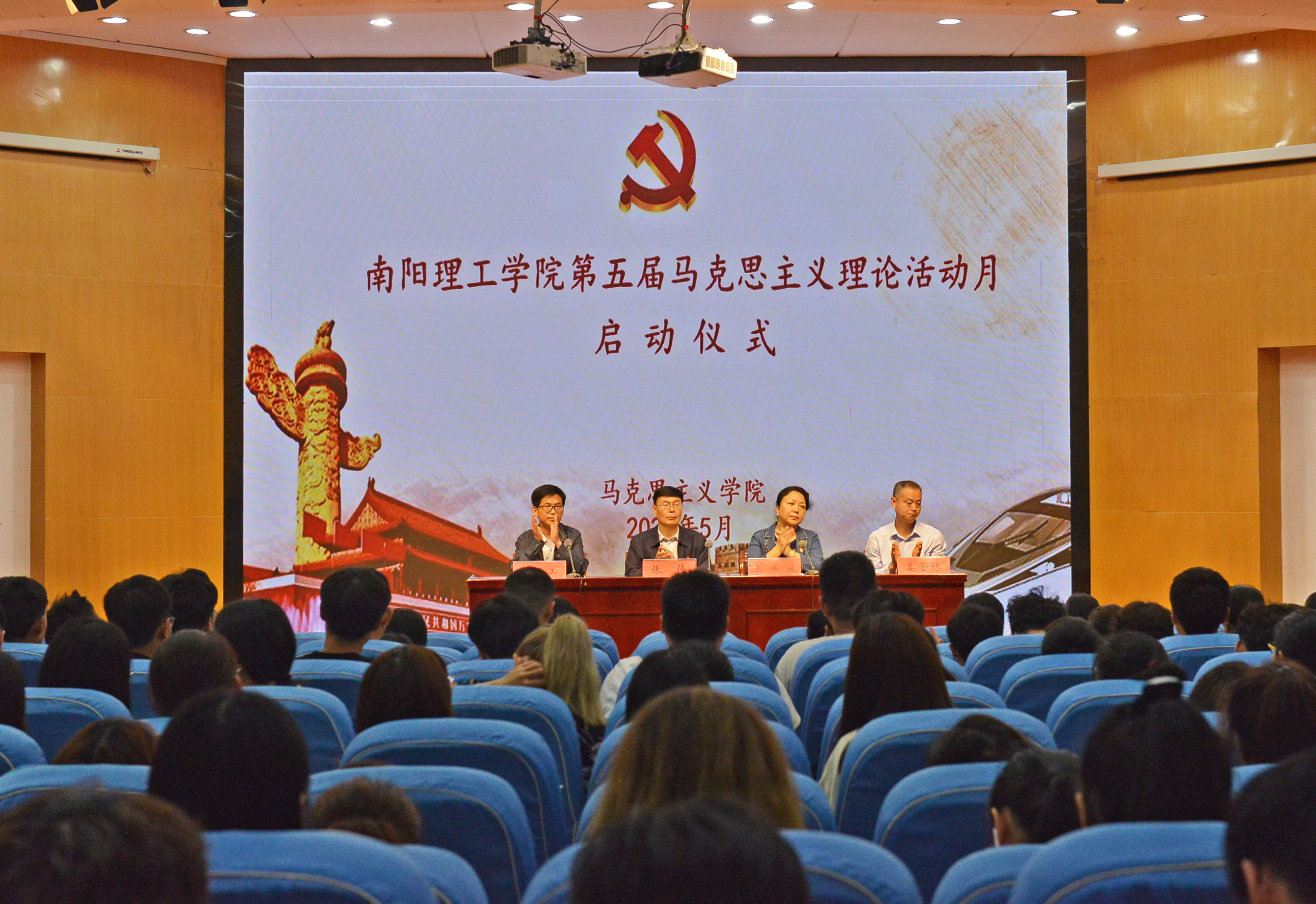 本网讯(特约记者/王丽)5月14日,我校在第二报告厅举行第五届马克思主义理论活动月启动仪式。校党委副书记、工会主席张伟,党委宣传部、马克思主义学院主要负责同志出席活动,马克思主义学院全体教师和部分学院学生代表参加仪式。