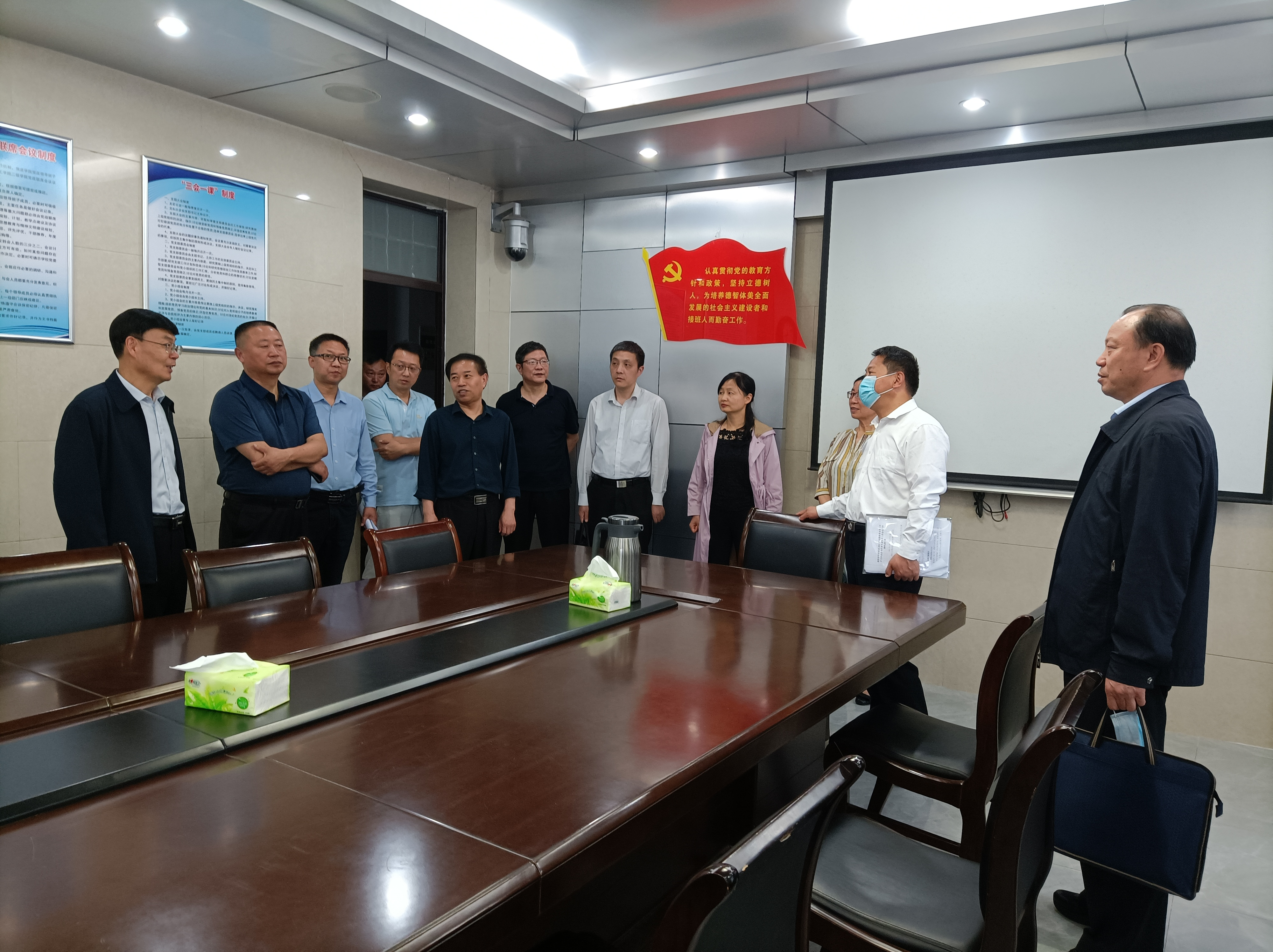 本网讯(特约记者/孙新国)5月13日,省纪委监委驻教育厅纪检监察组组长朱俊峰一行来校,调研我校贯彻落实2021年全省专升本考试安全工作会议精神情况。我校党委副书记、工会主席张伟,党政办、教务处、学生处负责人陪同现场调研。