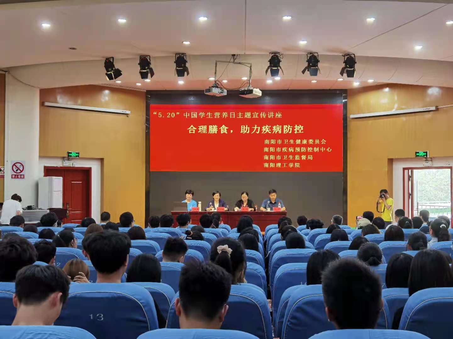 副校长王玉磊、南阳市卫生健康委员会副主任王颖出席讲座,学生处、校团委、后勤管理服务中心和校医院的主要负责人参加此次活动。