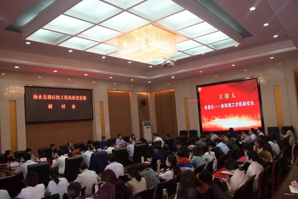 本网讯(特约记者/李浩 剧静宜)5月24日,我校举行南水北调后续工程高质量发展研讨会。南阳市南水北调工程运行保障中心党委委员、常务副主任张亚坤,校长安士伟,副校长肖泽昌、张爱红出席会议。河南财经政法大学原校长李小建、河南财经政法大学副校长朱金瑞,南水北调与水利科技编辑部责任编辑李素丽,河南工程学院管理工程学院院长李红艳,我校范蠡商学院朱九龙教授分别做主题报告。