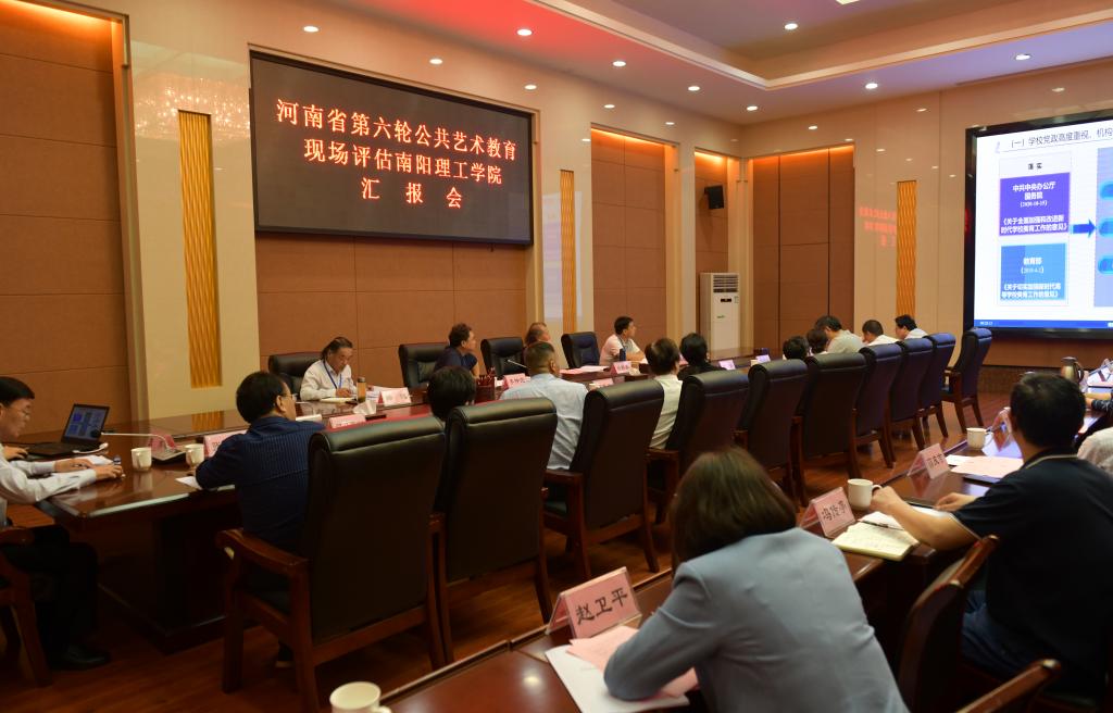 本网讯(特约记者/高盼)5月28日,由河南省政府督学、原省文联副主席李仲党任组长,河南大学公共艺术教研部主任彭西春、信阳师范学院公共艺术教育中心主任杨健等组成的河南省普通本科高校公共艺术教育评估工作专家组莅临我校,对学校公共艺术教育工作进行评估指导。