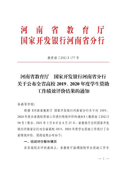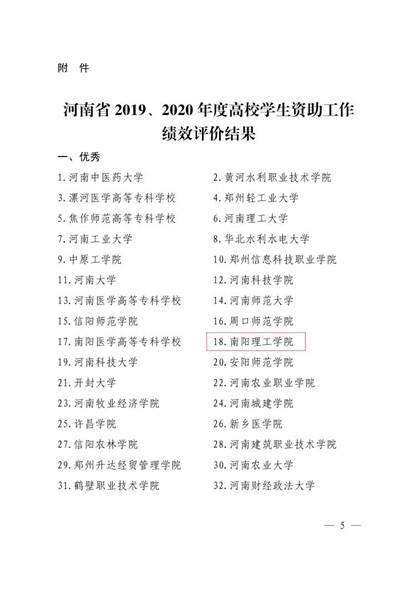 本网讯(特约记者/尹永娟)近日,记者从河南省教育厅《关于公布全省高校2019、2020年度学生资助工作绩效评价结果的通知》中获悉,我校在全省2019、2020年度高校学生资助工作绩效考评中再获优秀。