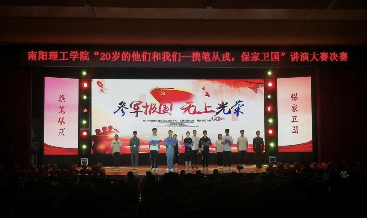本网讯(特约记者/徐梦霖 张露)6月7日晚,我校在毕业大厅举办“20岁的他们和我们——携笔从戎 保家卫国”讲演大赛决赛。校党委副书记、工会主席张伟,党委组织部、党委宣传部、党委学生工作部、党委人民武装部、心理健康教育中心、信息工程学院、马克思主义学院主要负责人出席活动并担任评委。师生代表500余人观看比赛。
