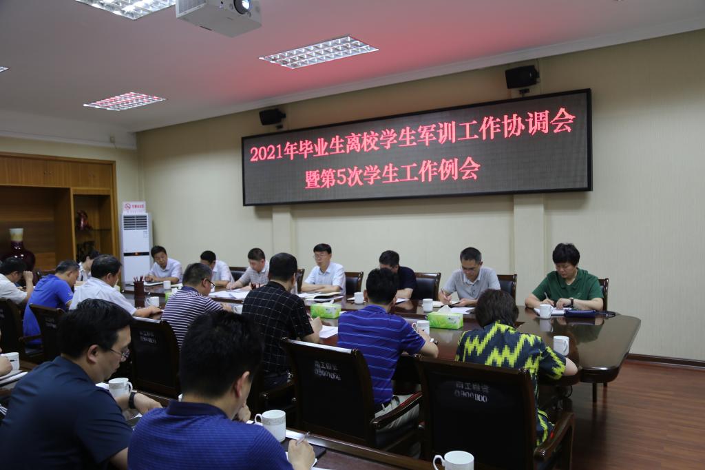 本网讯(特约记者/张启鑫)6月7日,校党委副书记、工会主席张伟主持召开我校2021年毕业生离校、学生军训工作协调会暨第5次学生工作例会。党政办公室、组织部、宣传部,学生处、保卫处、教务处等单位主要负责人,各教学院党委书记参加会议。
