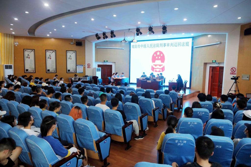 本网讯(特约记者/王冷)6月8日下午,南阳市中级人民法院刑事审判巡回法庭在我校第二报告厅公开开庭,审理上诉人大学生戚某帮助信息网络犯罪活动罪案件。各教学院法治宣传志愿者等300余名师生旁听庭审,“零距离”接受法治教育。