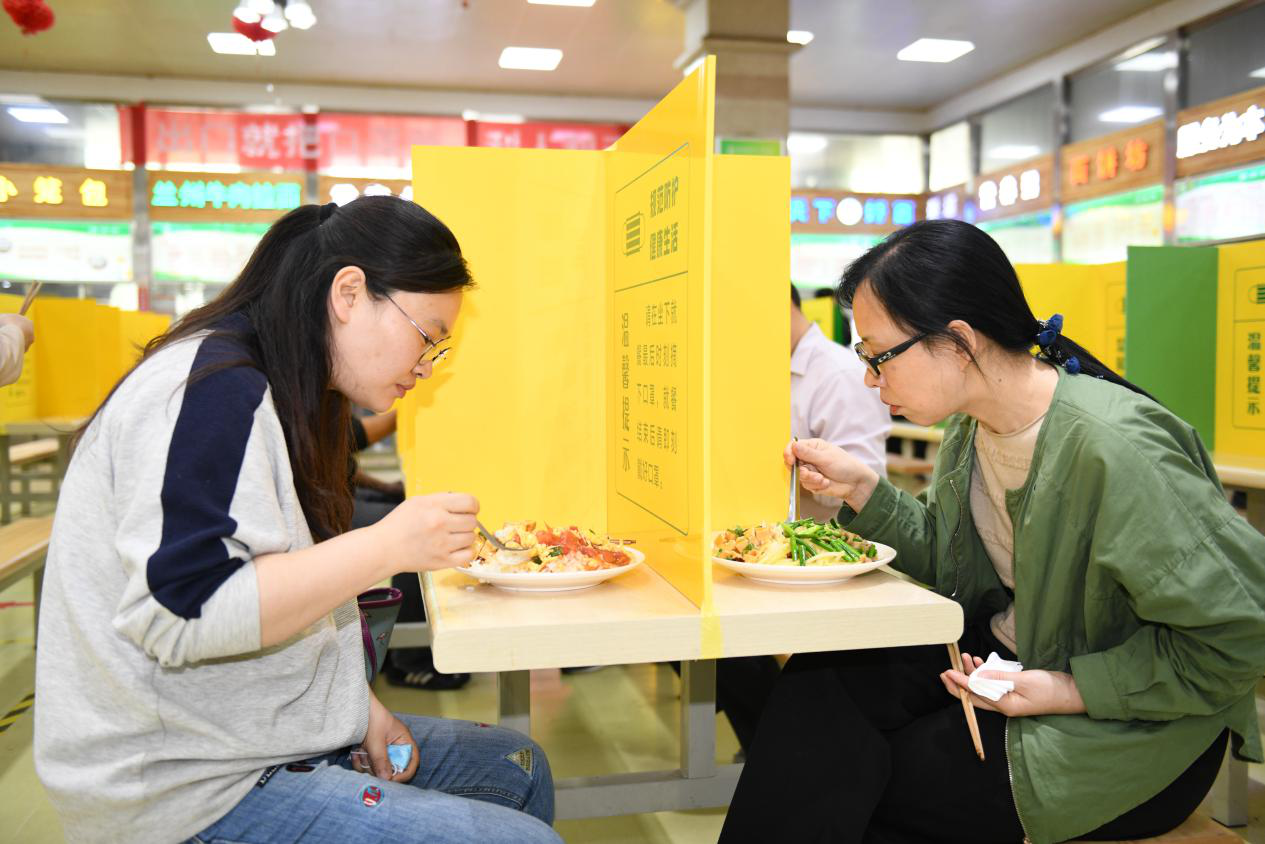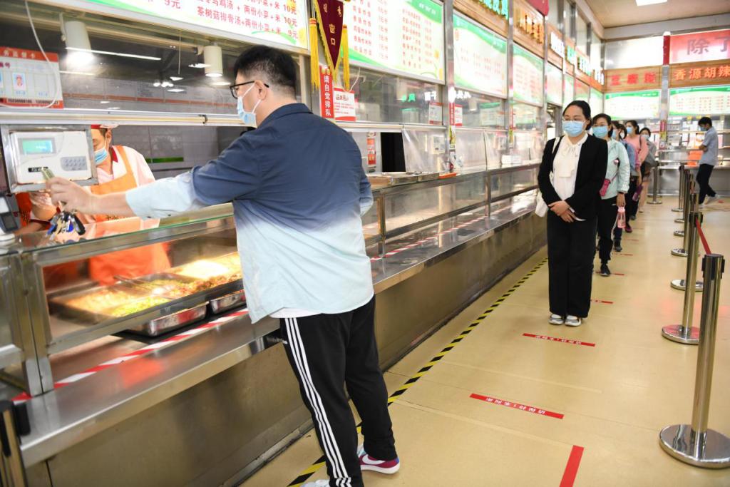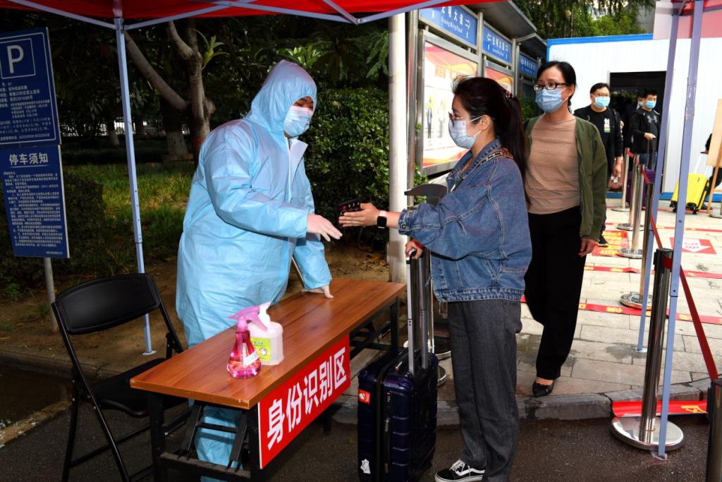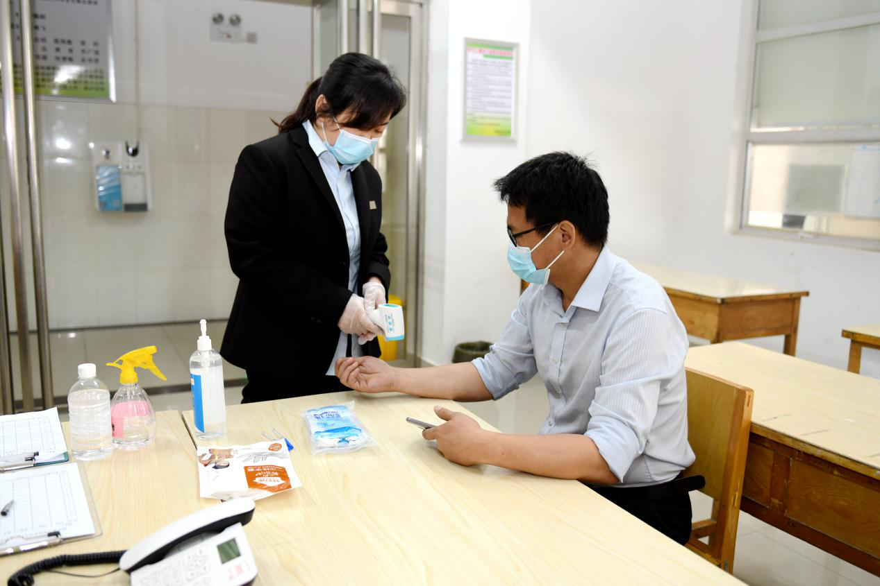 9点10分,张伟宣布演练开始。此次演练按照学生返校复学场景进行,重点对学生返校报到、宿舍管理、错时上课、错峰就餐等环节的防控管理、各环节的衔接及应急处置程序等进行演练,主要模拟工作人员按照要求对学生进行行李消杀、体温检测、身份识别、进出宿舍、课堂教学和餐厅就餐等,以及在不同场景下学生出现体温异常时的处置流程。