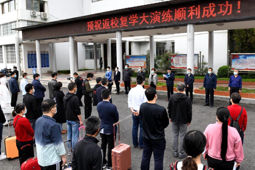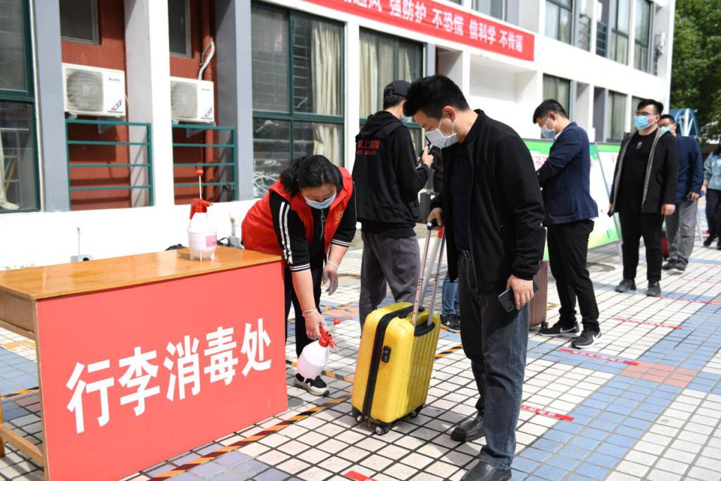 本网讯(记者/王虎)“你好!请出示电子学生证。”“ 同学,请间隔1米排队。”“同学!我给你测量下体温……”5月8日,一大批由辅导员扮演的大学生,拉着行李在学校大门口经过体温检测等规定程序后,依次进入校内。这是我校为进一步落实落细疫情防控和复学准备各项工作组织开展的返校复学演练。