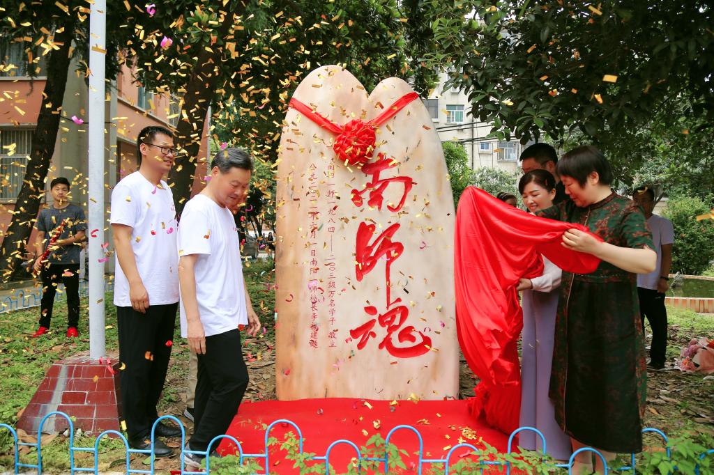 当天上午,校友齐聚七一路校区教学楼前,诵读校风校训,追忆母校点滴,立下“南师魂”石碑。随后,原一师校长李福建、理工校友会会长胡楠、教师教育学院负责人致辞,表达对校友们的关心与祝福。