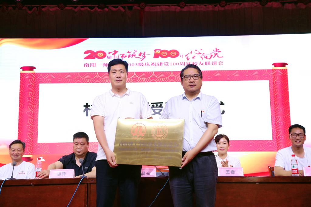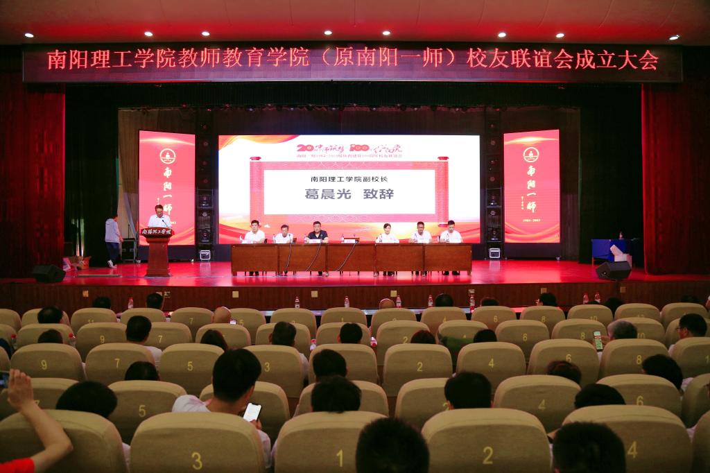 会上宣读南阳理工学院教师教育学院1984-2003级校友会组织机构人员名单。葛晨光为校友会、名誉会长、会长、副会长授牌。(校对/鲁静薇 审核/肖邓华)