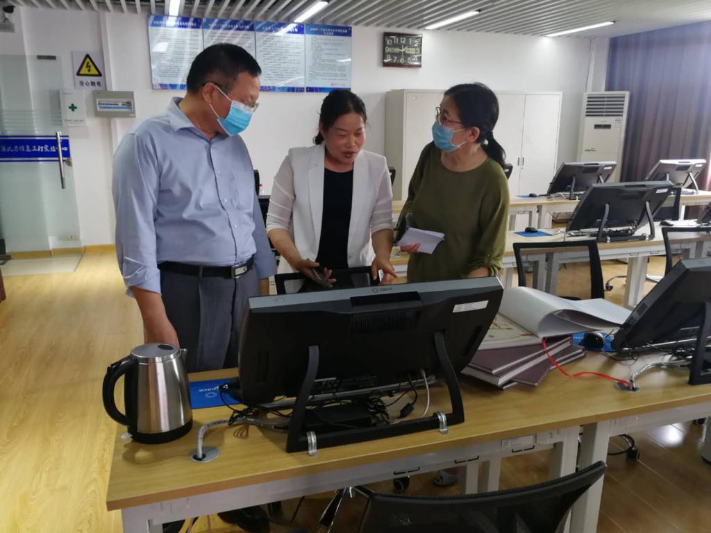 张世海查看三个学院的防疫措施,观看线上线下答辩现场,翻阅学生毕业设计(论文)作品,观看答辩人陈述、提问与答辩过程。随后,听取三个学院的答辩工作安排。