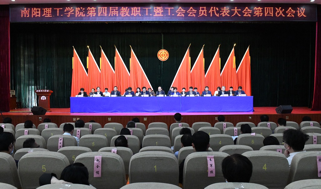本网讯(记者/王虎)4月29日下午,在圆满完成各项预定议程后,南阳理工学院第四届教职工暨工会会员代表大会第四次会议在毕业大厅胜利闭幕。校领导邢勇、刘荣英、秦鹏鸣、张伟、肖泽昌、周礼春、张世海、许建辉、张爱红、葛晨光、王玉磊及主席团全体成员出席闭幕式。校长刘荣英主持闭幕式。