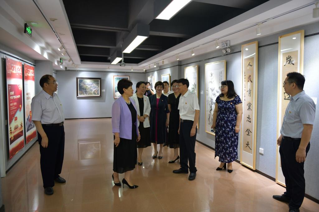 张伟在致辞中指出,此次展览既是一场艺术的饕餮盛宴,更是一堂生动的党史教育课。站在“两个一百年”的历史交汇点,全面建设社会主义现代化国家新征程已经开启,我们要更加紧密地团结在以习近平同志为核心的党中央周围,不忘初心,牢记使命,砥砺奋进,以高度的责任感和使命感,为新时代学校高质量发展作出新的更大贡献。