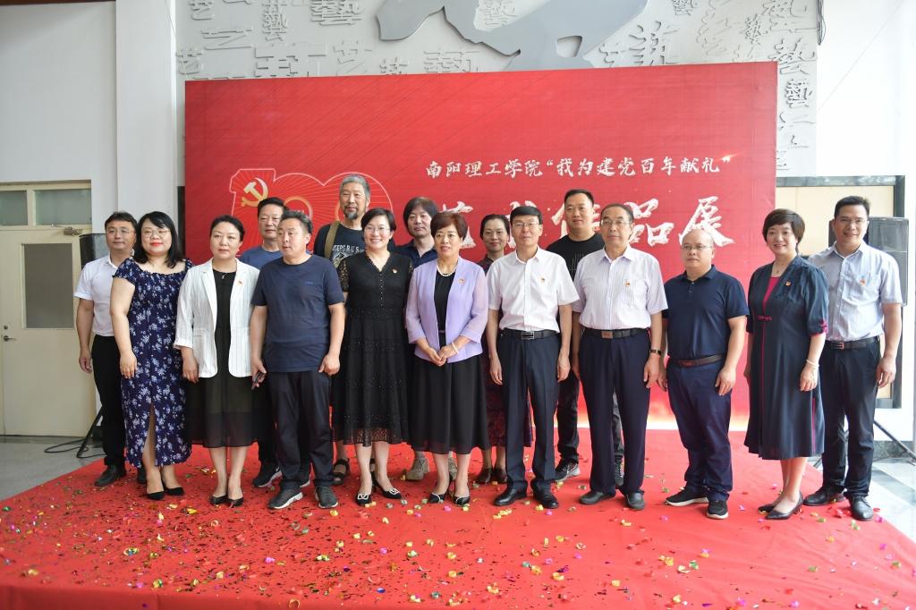 本网讯 6月29日上午,我校举行“我为建党百年献礼”艺术作品展览开幕式。校党委书记刘荣英,党委副书记、工会主席张伟,副校长王玉磊,党委宣传部负责人,机关党委代表和学工党委代表出席开幕式。数字媒体与艺术设计学院获奖师生及学院负责老师参加开幕式。
